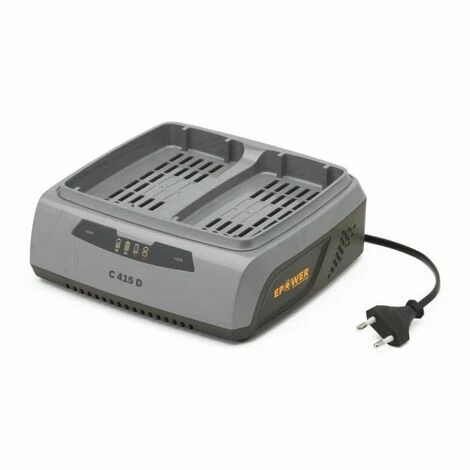Chargeur double C 415 D pour deux batteries compatible avec toutes les batteries 48 V. Courant de charge 1,5 A, vitesse de charge standard et deux logements de batterie disponibles. Équipé d’une prise Euro.