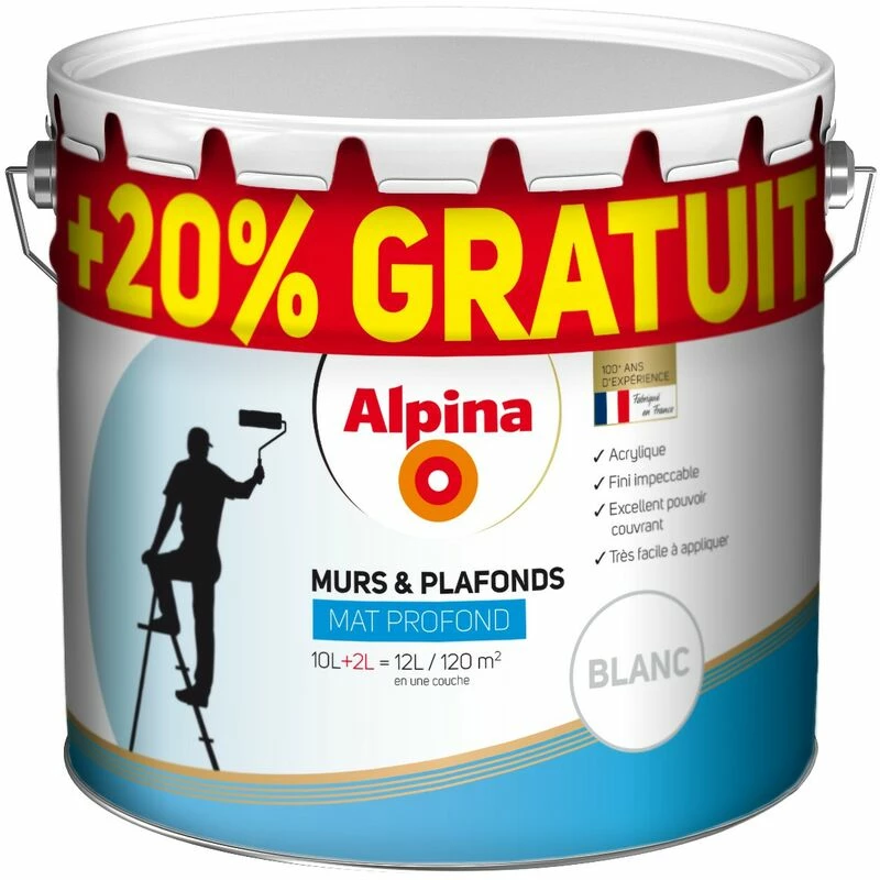 Alpina Peinture Murs Et Plafonds Mat Profond – Blanc – 10L + 20% Gratuit | Conditionnement: 10L + 20%